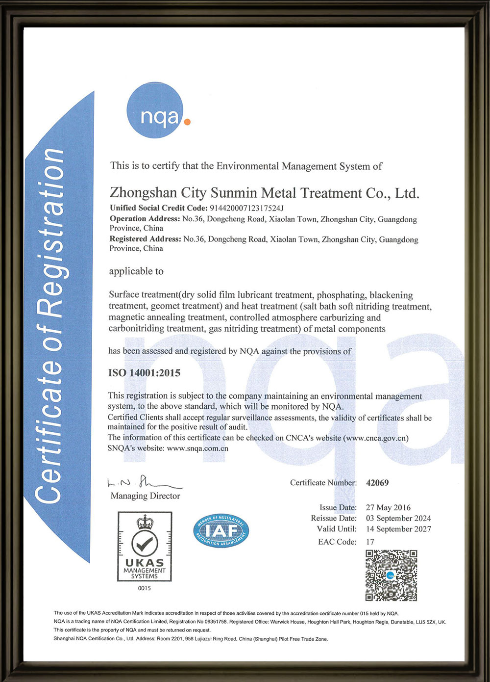 • ISO 14001:2015認證